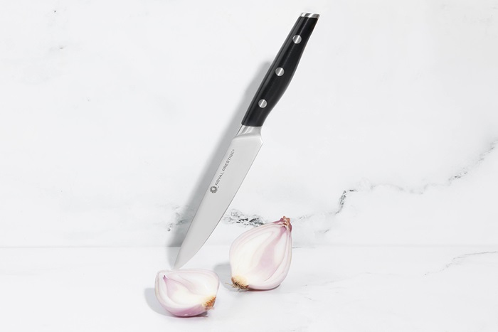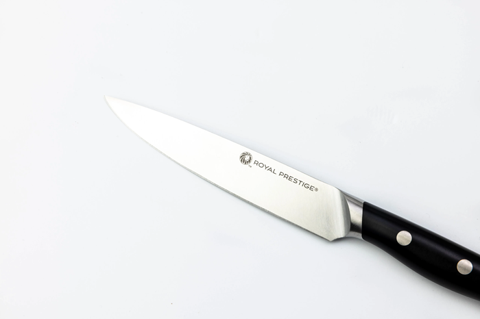 El Royal Prestige® Utility Knife es una versión más pequeña del famoso Royal Prestige® Chef´s Knife. Te ayudará a cortar y picar los ingredientes más pequeños con mayor facilidad para preparar tus recetas favoritas. Su versatilidad no tiene igual y ahora con el mango rediseñado que favorece un agarre profesional de manera más cómoda y que reduce la fatiga al usarlo por mucho tiempo. Sin duda este se volverá tu cuchillo favorito para el uso diario en la cocina.