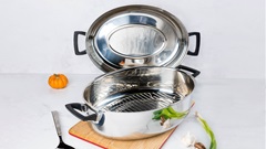 Cocina tu pavo sobre la estufa y prepara verdaderos banquetes para compartir en familia, en cualquier época del año. Fabricada con acero inoxidable grado quirúrgico y con garantía limitada de 50 años. Puedes usarla en el horno o sobre la estufa. Dimensión: 18” x 13” / 46 cm x 33 cm.