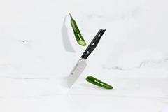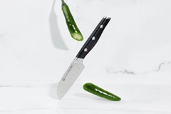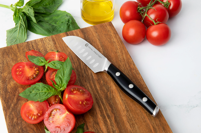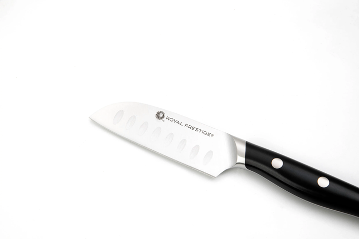 ¡El Royal Prestige® Santoku Knife 3.5" será tu mejor aliado en la cocina! Es un cuchillo originado en Japón con la calidad de acero de grado alemán que es ideal para cortar en rodajas, cubos y más. Cuentan con muescas en la cuchilla para evitar que se peguen los ingredientes, facilitando el corte rápido con un mango rediseñado que favorece un agarre profesional y reduce la fatiga. En pocas palabras, lo mejor de lo mejor en un práctico tamaño de 3.5".