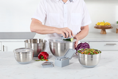 Para antes, durante y después de cocinar...¡estos son los expertos! Corta o ralla tus ingredientes, mezcla salsas, postres y mucho más o guarda tus comidas para después con los Royal Prestige® Mixing Bowls.